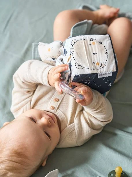 Cube d’activités à suspendre CÉLESTE en coton et polyester.