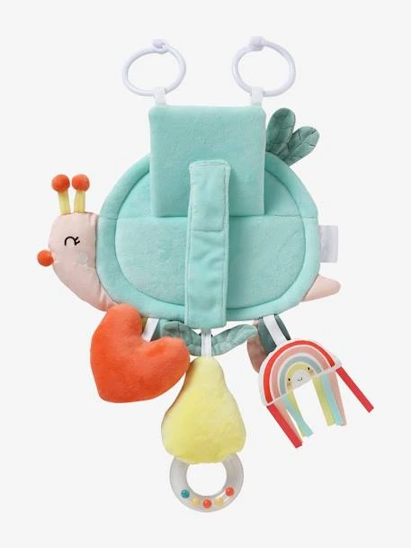 Un escargot aux 1000 surprises que bébé va aimer toucher, secouer, mordiller ! Vous pouvez selon vos besoins la poser sur une surface ou l’attacher au siège d’une voiture grâce aux différents systèmes de pose et de fixation. Des textures, des couleurs, des petits bruits… les sens des petits seront tendrement stimulés !