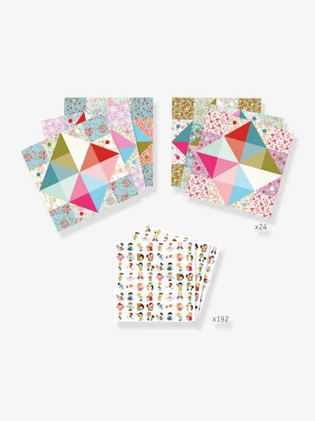 - Contient : 24 feuilles d’origami imprimées (6 modèles x 4, format 20 x 20 cm). 3 planches d’autocollants-gages (20 gages différents)