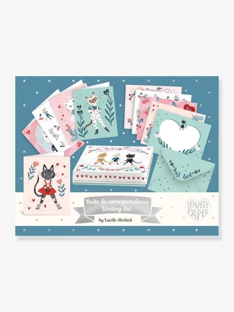 Un petit coffret de correspondance aux douces illustrations avec des effets métallisés renfermant 10 cartes et 10 enveloppes avec des chats espiègles. Un coffret idéal pour correspondre avec ses amis ou sa famille. Lovely Paper by Djeco, une collection de papeterie raffinée et délicate aux jolies illustrations, pour illuminer le quotidien des grands et des petits.